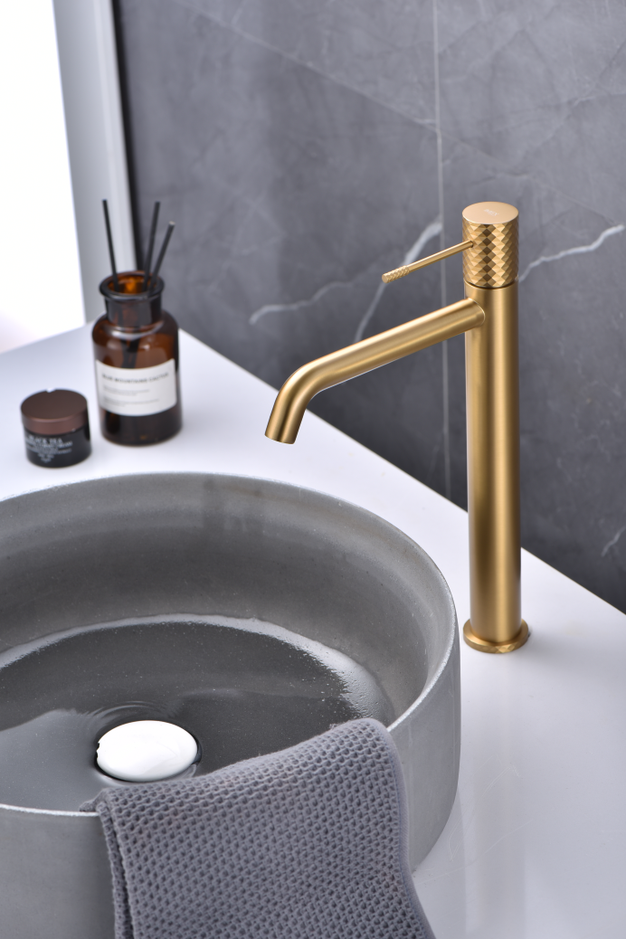 Genova | Bateria umywalkowa stojąca wysoka szczotkowane złoto