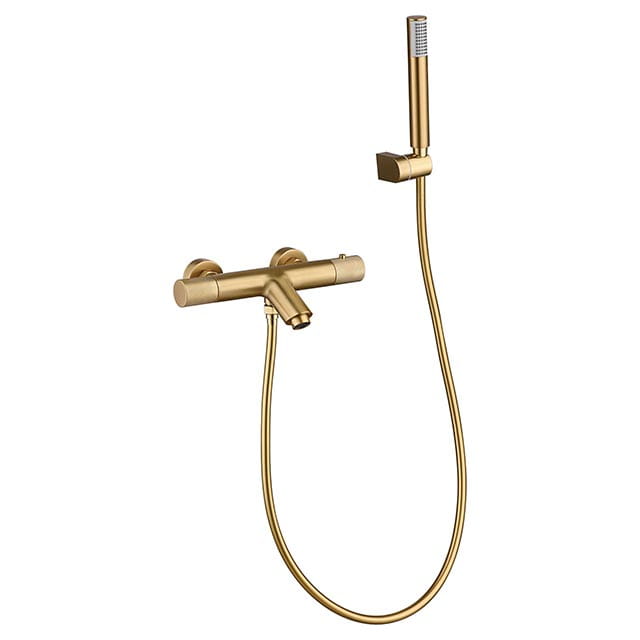 Bateria wannowa termostatyczna ścienna z kompletem natryskowym szczotkowane złoto