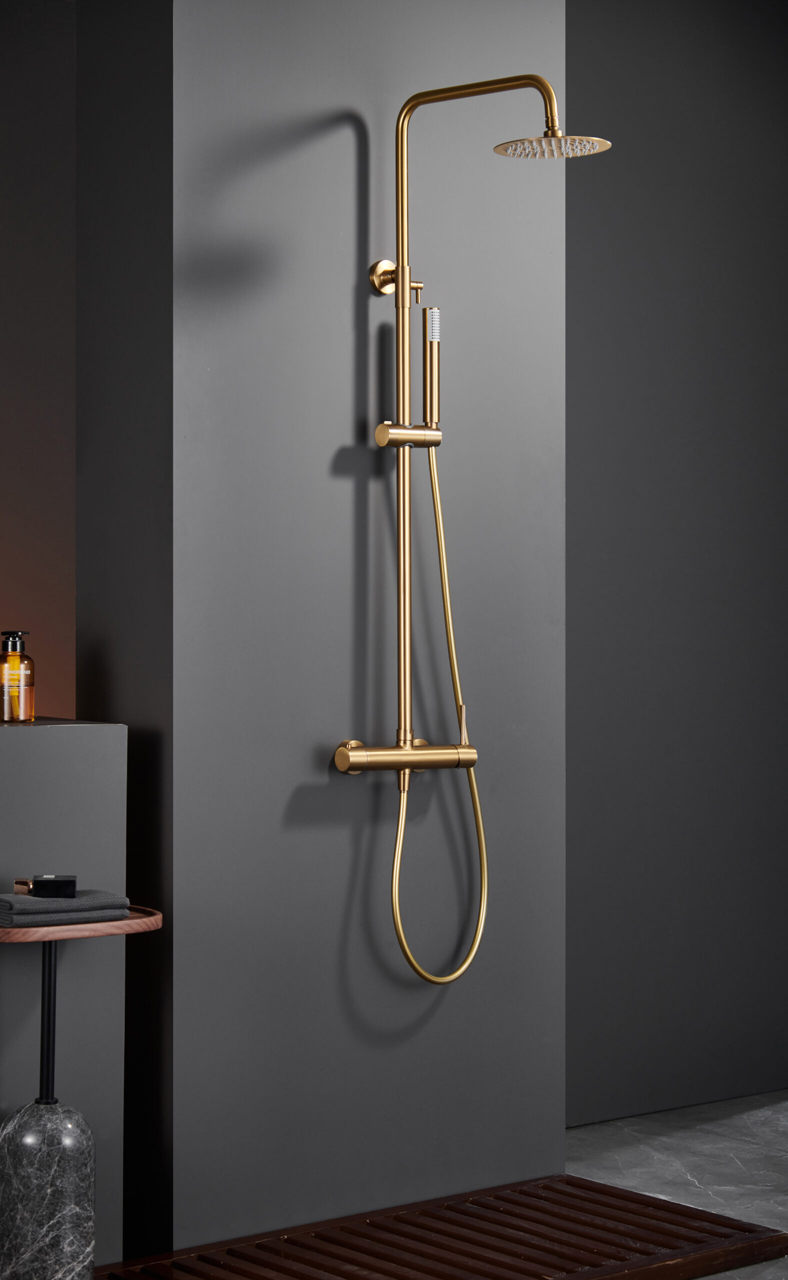 Monza | Kolumna prysznicowa termostatyczna szczotkowane złoto
